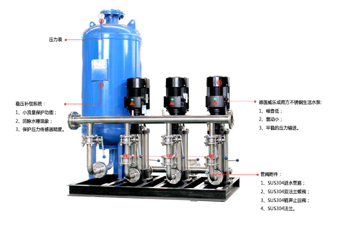 由氣壓罐、水泵及變頻控制柜三部分組成,
